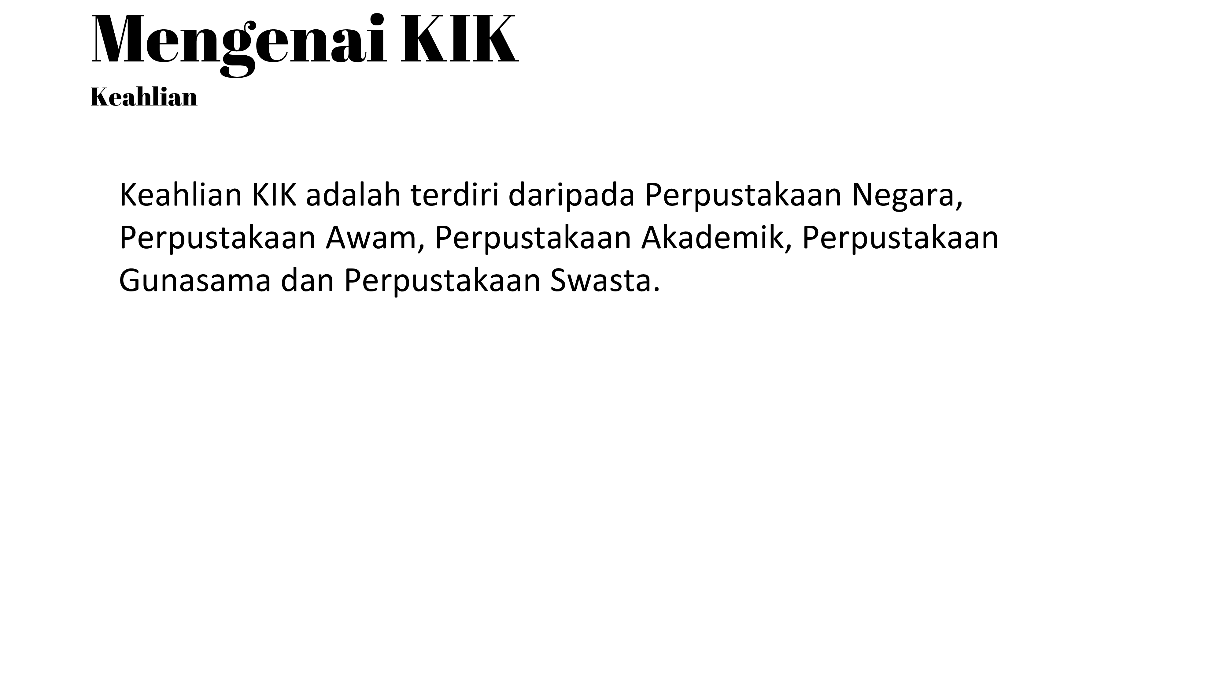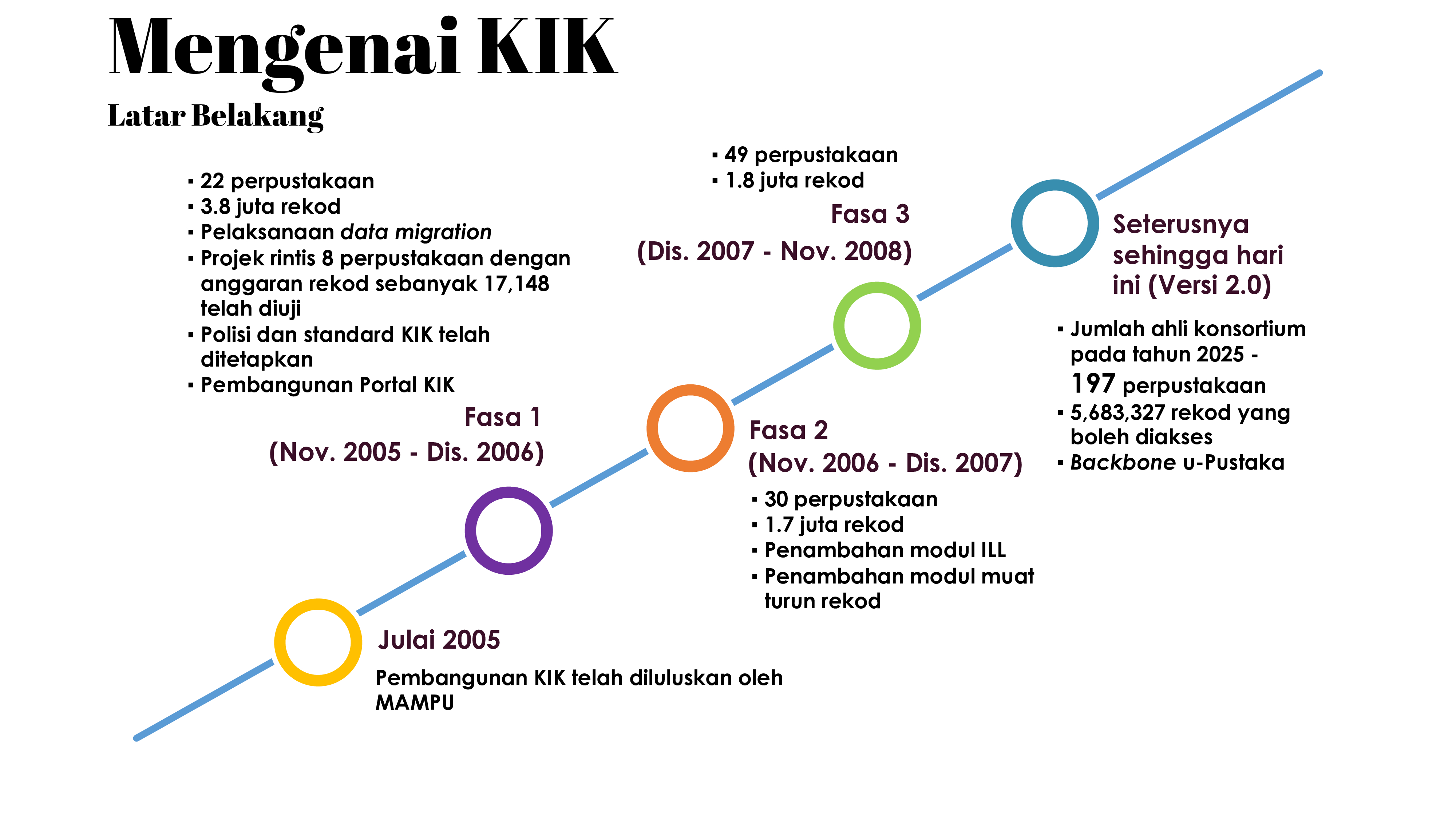 A National Committee, with its secretariat at NLM, was set up in 2004. Its members met at a workshop on 19-20 October, 2004 at NLM to discuss in detail the definitions, visions, objectives, scope and the concept of KIK and propose details regarding its set-up. The proposal for the establishment of the KIK was approved by MAMPU and the Phase 1 KIK Project was launched in November 2005.